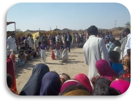 To provide Importance of Education and Gender Based Violence interactive theatre performance organized at 3 locations of district Badin and Thatta